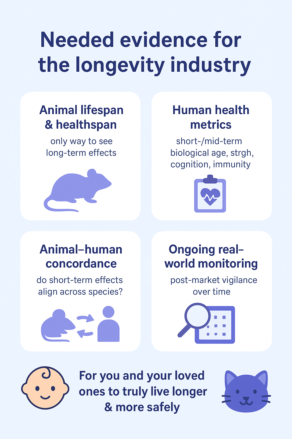 a longevity product you sell a health/biological-age metric you sellProducts that are meant to make people/pets live longer, metrics that monitor health evolutions
